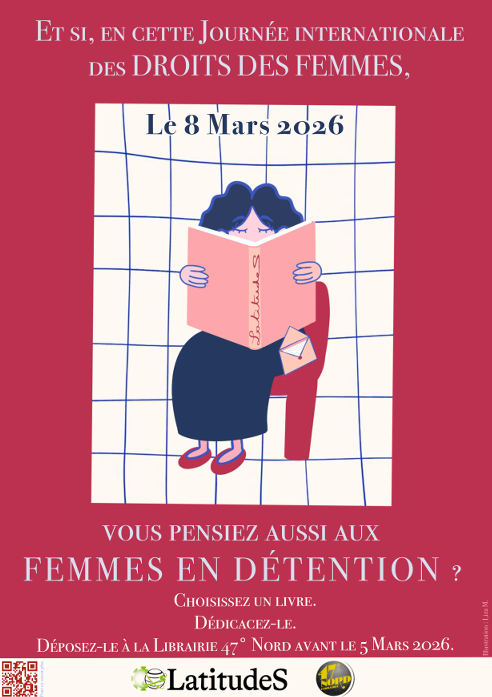 C’est pour la troisième année consécutive que la librairie 47°Nord se joint à nous pour proposer cette initiative. A l’occasion de la Journée internationale des droits des femmes le 8 mars 2026, les membres de l’association LatitudeS se rendront au Centre Pénitentiaire de Lutterbach pour offrir les livres récoltés et pour partager un moment d’échange avec les femmes en détention.